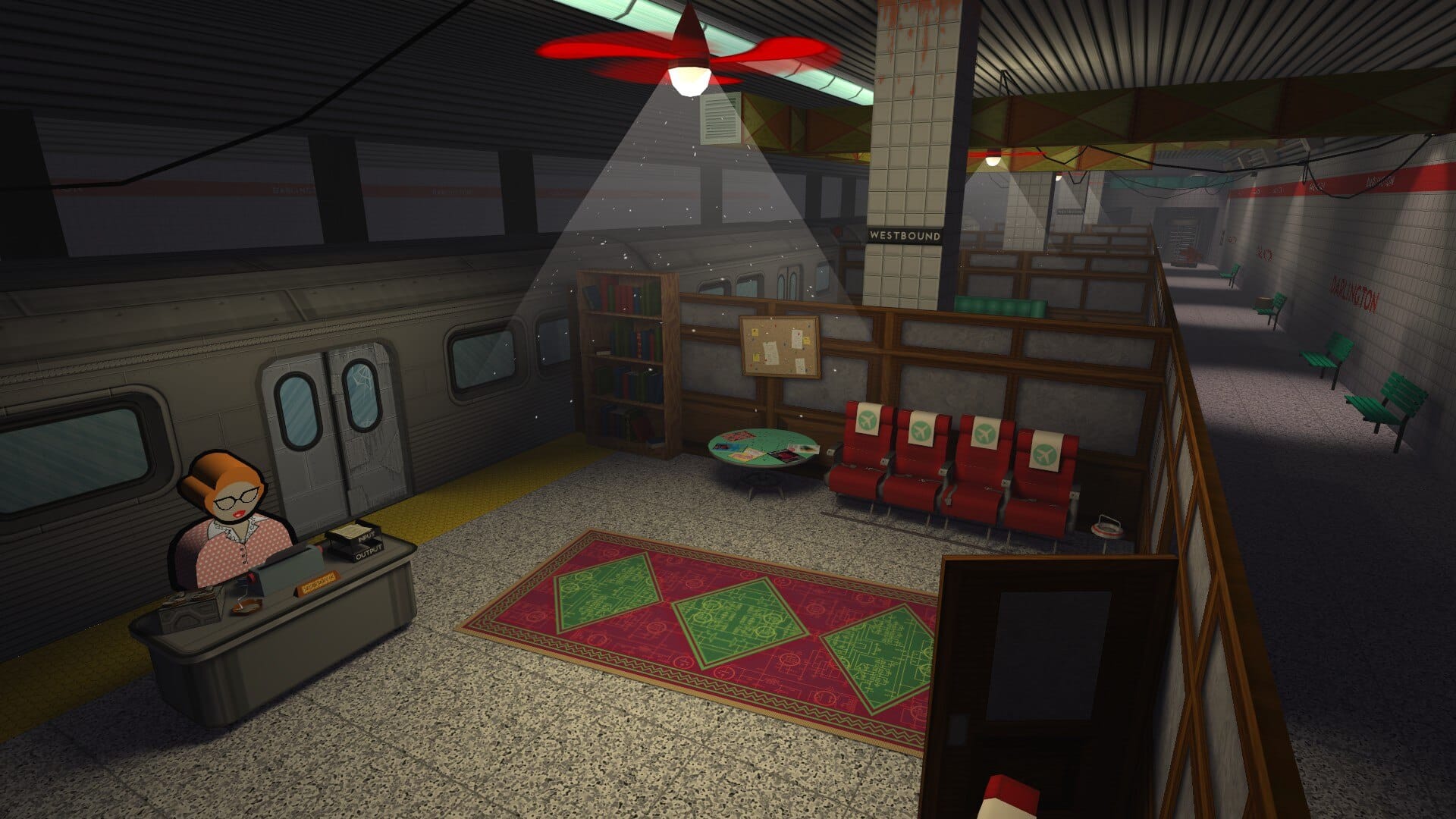Believe it or not, Jazzpunk does have a story. You star as Polyblank, a freelance spy working for an undercover agency of some kind based out of an old subway train in Darlington station, headed by the moustachioed Director, a man who sounds like he runs Anonymous. He sends you on various espionage assignments, from infiltrating the Soviet Consulate to assassinating cowboys with expensive kidneys. The plot and characters take many cues from old James Bond films and other early 60’s nostalgia, including a number of generic NPCs at a beach resort who are clearly modelled after Hunter S. Thompson.